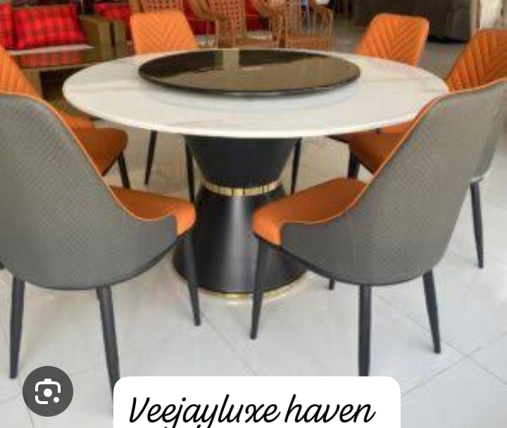 Executive Round marble Glass top six sitter dinning table with executive chairExecutive Round marble Glass top six sitter dinning table with executive chair